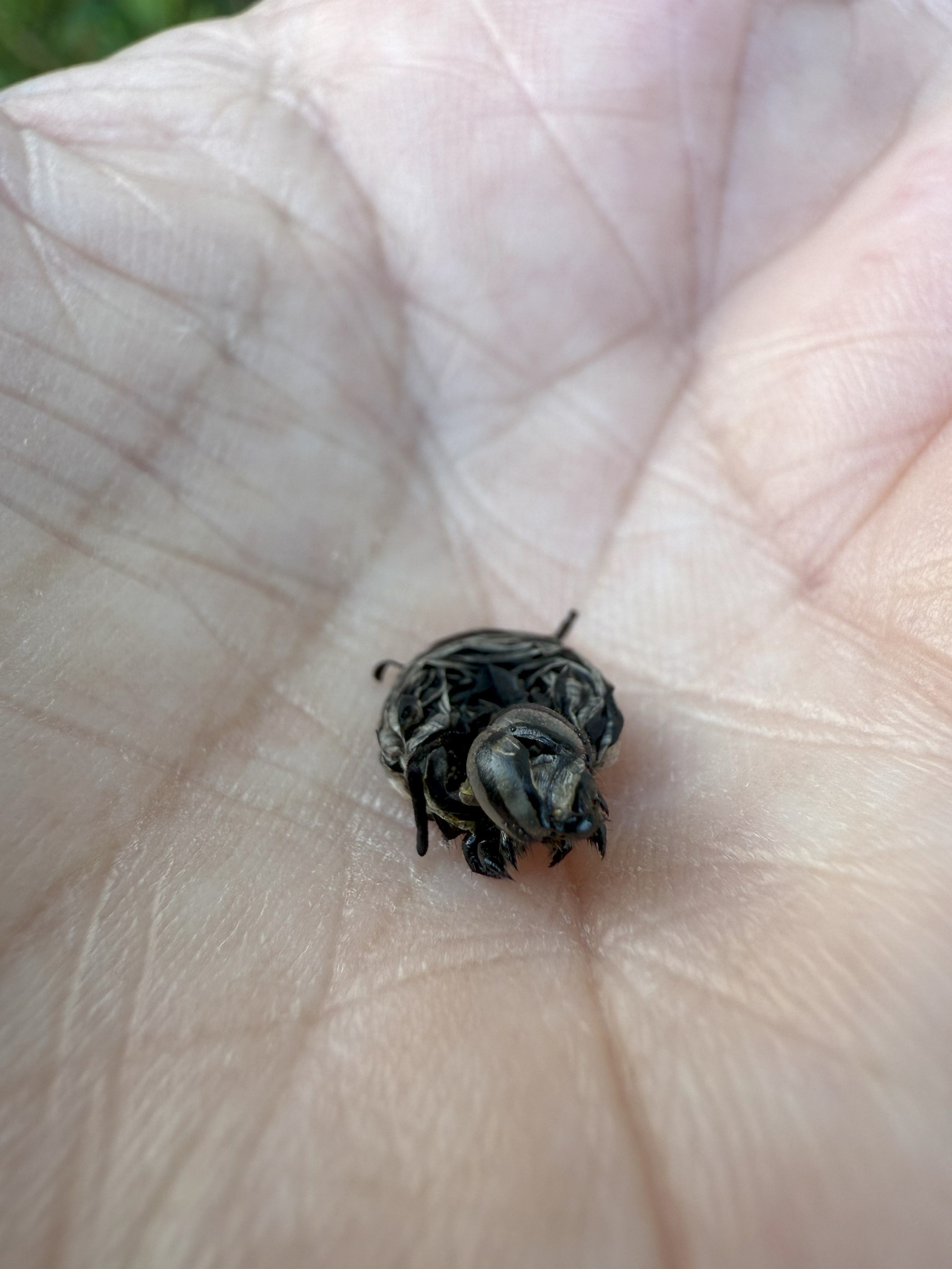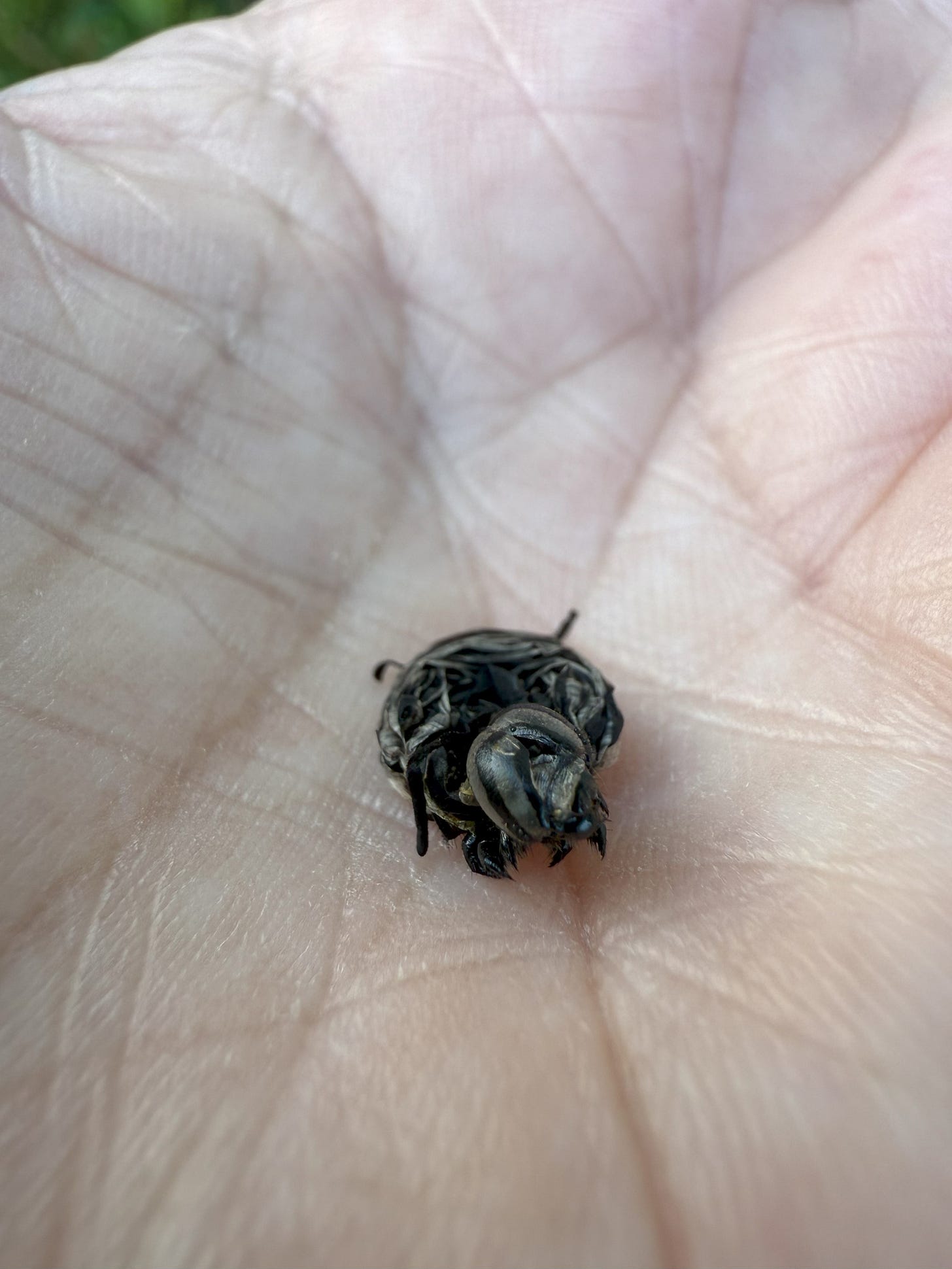 I tried to catch the first shell as it fell but the wind blew it out of my hand but I caught the second one - did I mention I watched TWO of these today. As it was in my hand it was so lifeless and small. To think just a few minutes ago it was surrounding that “huge” body and now looked liked wadded up tissue paper. Thinking about how annoyed the chrysalis was that it could NOT get it off quick enough made me laugh then it hit!!